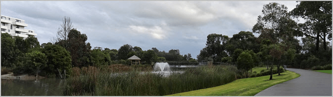 The Cooks River trail is an important way to get across Sydney and the best way to get to the Cooks River Trail in the west is to arrive at Strathfield and ride across to the start of the track through Strathfield. This is a nice ride past some big and interesting houses. This is not the only way way as there are three other train stations that are with a few easy kilometres of the head of the trail on Ada Avenue next to the Strathfield Golf Club. These other three stations all require you to ride through the gigantic and interesting Rookwood Cemetary, a great place to ride a bike at a modest pace. See trails on in the Rookwood area >>