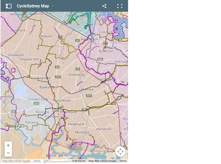 The longer shared path bike trails in the Bankstown area are Salt Pan Creek. the M5 Linear Path and Duck Creek. The rest of the trails on the map are a collection of short paths and council roads. This includes the meandering Bankstown oval path, Rookwood Cemetery, Padstow to Revesby and the council designated cycle roads from Bankstown to the Georges River Cycleway. South of Salt Pan Creek and north of the Georges River lies some really cycling around Oatley Park and Como. Here are some videos of trails in the area