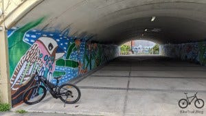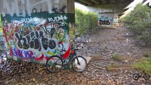 I started my ride from John Mountford Reserve which is really handy to the corner of the M5 and King Georges Rd. I then crossed south under the M5 and headed west next to the M5. You can ride for a few kilometers on pretty good trails crossing only three roads. You will then come to Salt Pan reserve which you can bypass on good trail to the north. Alternatively bump around on a mountain bike on a longer trail for a laugh by heading the long way round. Crossing under the M5 past some street art and you are at Mclaughlin Oval. This is another good entry point to the trail and a good place for kids to start riding. If you want to do a bike ride and then pack the bikes away and do a walk, this is a good place to start. From the Oval, you start to run into about a 1.5km of wooden walkways. You need to walk on these as they are not so wide and the council says they may fine you. That said, where in Sydney can you walk on 1.5 km of wooden walkways in mangroves. So walk and ride south down Salt Pan Creek till you get to a bridge. You can ride a little further where it turns into a walking track. To avoid walking back up the walkways, cross the bridge and head left on a neat little trail that ends up at Riverwood Park. Head down Union and the Roosevelt Streets till you get to the Karne Street reserve. Now you are back on the original trail. So head back to where you started. Notes: You could train to this trail by getting off at Narwee Station which is near John Mountford Reserve. This trail is very kid friendly if you start near the Riverwood Community Centre or McLaughlin oval and you will have about 3 kms of trail to ride on. Find out about the long Woronora extension to Sutherland >> Pictures starting at the John Mountford Reserve, head west to Salt Pan Creek and then return back through Riverwood to the same trail and head back to the start. The map shows where you need to be aware about walking on wooden walkways and also the easy way to head around the giant reserve. Filming on a wet day and a dry day. See trail in Google Maps >>