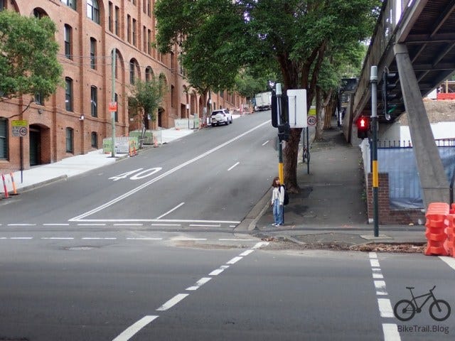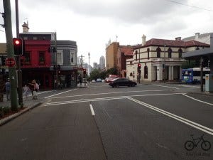 For this challenge I was clueless as my only Glebe biketrail was the beautiful and slow Black Wattle Bay shared path. So I went with the system I used in challenge two, start at the Glebe town hall. After looking at my map for 20 minutes, I decided the best way was to head straight down St Johns Rd and get some car relief at Wentworth Park. Then I would go down the back streets in Pyrmont and head to the Pyrmont Bridge. From Pyrmont bridge, the shared path heads over to Kings St where I could see some bike infrastructure.