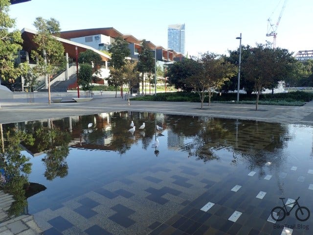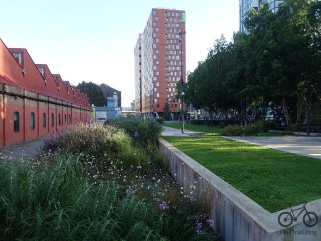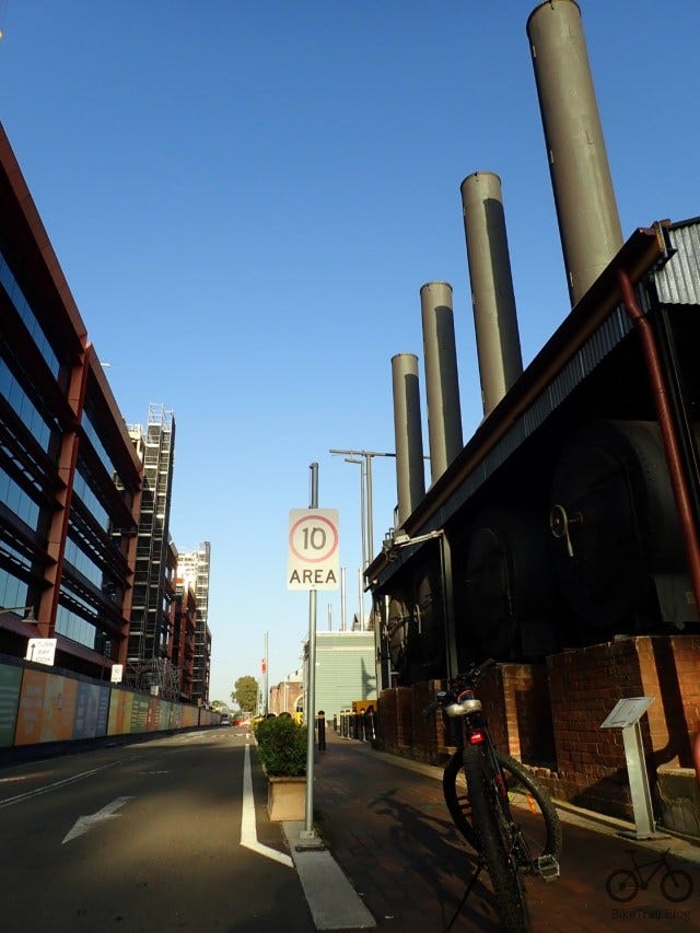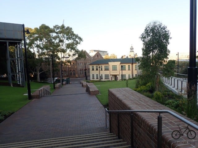 Back to me, I needed an easy ride after a few weeks of feeling poorly, this was a perfect choice. Looking at the maps I realised that the trail would go near the Australian Technology Park which I had never gone to. I decided to try that first before heading down the usual paths that I go through Redfern and Chippendale. I am so glad I did. The tech park is so good, I would love to cruise thru that area every day. Then there are other great treats on this ride like Chippendale Green and The Goods Line and then there is Darling Harbour. This could be Sydney’s best short commute. Ok there is a few metres of Redfern station to negotiate and a busy road to ride alongside but that’s not much of a penalty. If you live in Erskineville or Alexandria and work on the Darling Harbour side of the city, give this track a go. Its now my favourite way to get to the city from Sydney Park.
