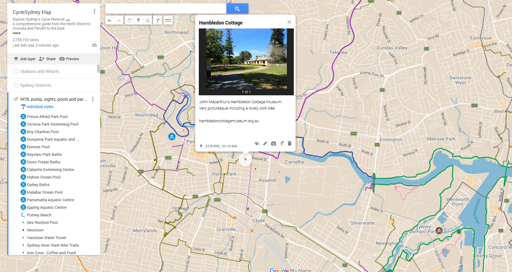Open the CycleSydney Map: Access the main Google My Maps link on your phone or desktop.