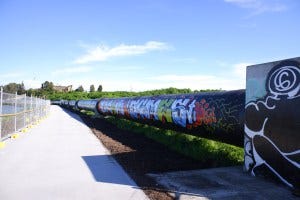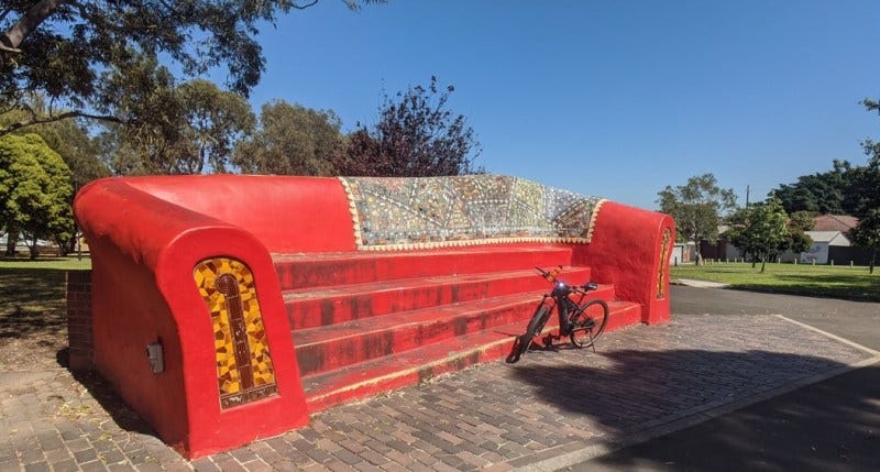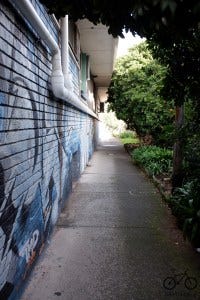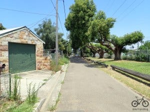 Riding from Roselle Park to Stanmore Railway Station via Whites Creek Lane offers an interesting way to travel between Iron Cove and the Strathfield Railway line, and this great little back road trail provides a longer loop to explore. Bouncing around between garage doors, through lovely city parks, and even passing under Australia’s first reinforced concrete aqueduct, this dead flat lane is totally recommended. It also provides a great, colourful, and surprisingly car-free extension into Annandale despite its proximity to busy roads, following Whites Creek for a while past the historic aqueduct. Stretching for 3km from Jubilee Park and only crossing three roads, this path connects conveniently to Rozelle Bay and the Anzac Bridge Cycleway, and for those seeking more speed, the adjacent streets with their numerous white-painted bikes offer a good alternative ride. See the purple trail here >>