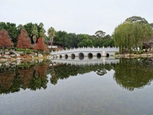 I will now tell you how you should do this trail. Arrive by train at Guildford station. Then navigate the circuit to Canley Vale where Vietnamese steamed pork buns or a bakery or even a restaurant awaits you. Now hop on the train and head home. If you drive, you can use the 7km trail from Canley Vale back to Guildford that sort of follows the rail line and passes through Fairfield. Its easy enough riding but is not much to get excited about. For road bike riders, head as far as Camsley Hill City Farm, then return back whence you came for 40km of work. The ride to Canley Vale from there is on shared footpaths and not so suited to road bikes. For kids, I suggest a trial run by arriving at Lizard Log Park where there is a kids loop or ride from Guildford to Prospect Dam with the older ones. ?How to see the reservoir: At Walder Park, you need to ride a 100m to the north to William Lawson Drive. There you will get a wonderful photo of the reservoir. Notes: From Guildford look for bike signs to Cecil Park. Once you get to the metal cow at Camsley Hill Farm, head down the creek following signs which say either Canley Vale, Fairfield, or Cabramatta. When you see Canley Vale village, you head off the trail for 500m to the shops.