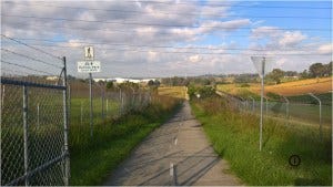 On the way you pass turnoffs to Cecil Park, Elizabeth Dr and Lizard Log park for the kids is only a couple of kms away if you want to park you car nearby. Avoid Horsley Park Road, the widish footpath is very close to a super busy road.