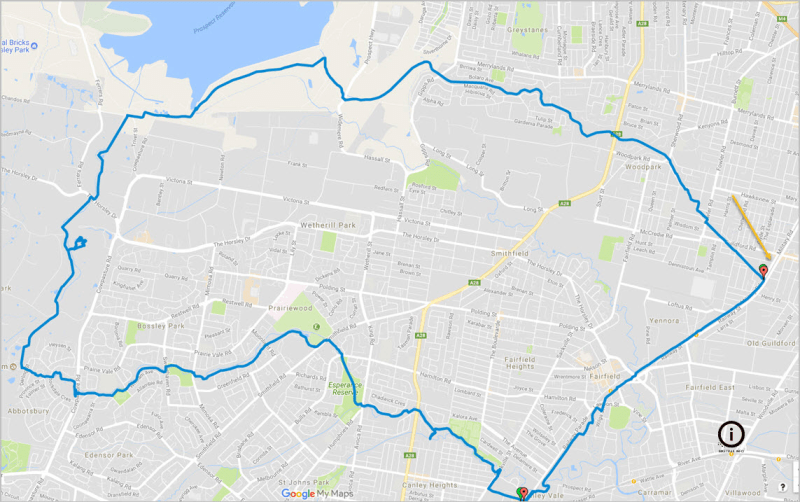 Here is the trail in purple from Rooty Hill to Kings Langley >>