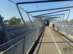 In summary, the complete M7 cycleway is an 80 km dedicated, protected bitumen path. Running parallel to the M7 motorway, it is known for being one of the highest quality and most consistent cycling routes in Sydney, with no traffic lights and minimal interruptions. The path weaves through various landscapes, including bushlands and urban areas, offering a mix of scenery. The M7 Cycleway is suitable for riders capable of 20 km or more with some hills and is also popular for other activities like walking and running.