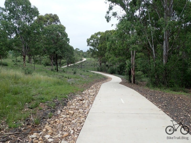 Of the features of the new suburbs is that they mostly have a network of bike trails. Most of the these go through the gullies between the housing or follow the bigger roads. They all seem to end up a high school or a community centre where you will usually find a way to easily cross the major roads. If you look at the path I followed, all the trails that are in purple are bike paths. Newer suburbs in Sydney make for fun recreational riding.