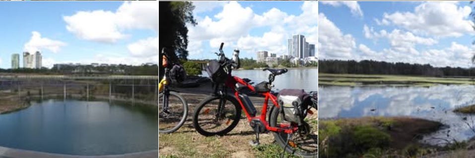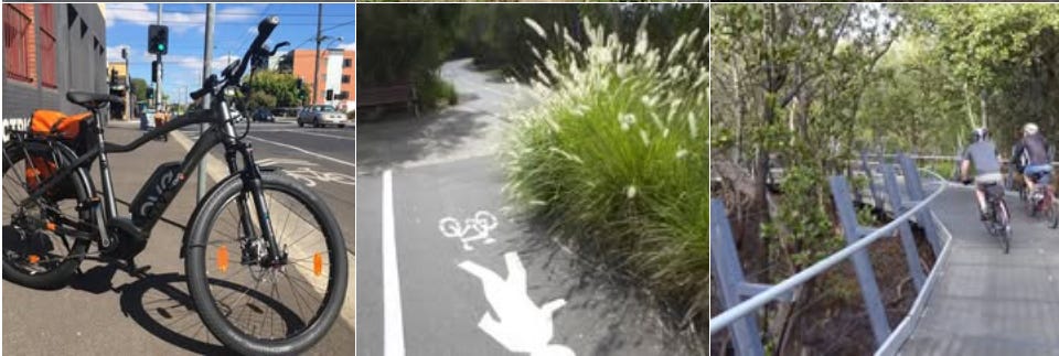 50km trip. Flat except for the hill up to Shrimptons Creek Path which is suited to ebikes only.