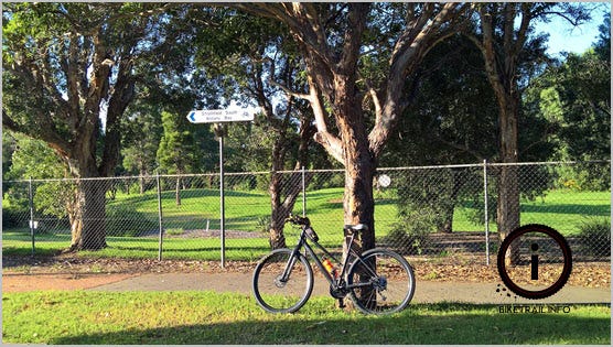 The track between Rhodes Station and the Start of Cooks River took me two attempts. Its pretty well sign posted except two signs were in the wrong direction. This trail is only to get you between Olympic Park and Cooks River, it has great start on Powells Creek, then there are some dodgy bits till it gets closer to the Rookwood area. The alternative is train between Rhodes and Strathfield and ride to the Cooks River Trail from there or catch a train from Olympic Park to Lidcombe and ride through Rookwood. Personally for an enjoyable riding experience, I would catch the train. There are a few road sections and road crossings so proceed with caution. The bonus is once you get to the Cooks River its all downhill to the Airport. Follow the map carefully crossing Powell Creek, finding Airley park on The Cresent and once you leave Melville Park, follow the signs. The path crosses the M4 on a bridge and Great Western Highway. Once you get to the end of the golf course, you go out on the main road for 30 metres and then enter Barker St. If you get lost, look on your phone for 34 Melville Ave Strathfield or say hello to a cyclist heading in that direction as they are probably going the same way. Its 8 km in distance and took me 30 minutes. Here is the green commuter trail down through Homebush >>