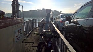 This is a spectacular slightly hilly trail that has a little free ferry adventure thrown in. Its the trip from Cabarita Park across to Putney and then along the river to the Rhodes railway bridge and back. The length that you will ride will depend entirely on the times that the Mortlake ferry is running. So start by looking up the times rms.nsw.gov.au/… /vehicular-ferries/ In general it starts early during weekdays but ends before 10am and cranks up again in the afternoon. On the weekend it starts at 10:30 am and runs till 6. Don’t get stranded, read the timetable and ask the captain when onboard so you don’t get stranded.