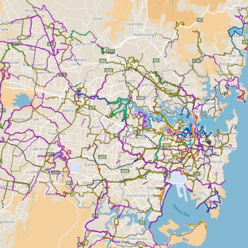 You can find the Parramatta River trail, Carlingford RT and Olympic Park here in this RideWithGPS collection