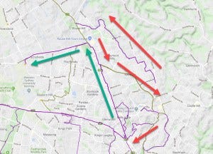 Here is a clip of a video of a ride from Beaumont Hills to Bella Vista and video in the other direction going via Smalls Creek
