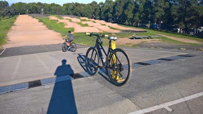 See some Olympic Park trails here >> To get to the park by car, there are car parks everywhere. Only on sunny weekends after 11am will you have to hunt for a spot. Better still arrive by train and the best station is Rhodes as it puts you in a great spot for riding. Olympic Park station is fine too and both have lifts for your bike. As usual with bikes on trains, avoid peak hour, go early if you can and Sunday is the easiest. You can put your bike on the ferry and arrive at Woo-la-ra Quay. That would be cool but watch for busy times as you could be refused and no chance on Sunday. Notes: There are two bike hire centres at Olympic park. There is the occasional road crossing so watch for that. Kids riding mecca apart from that. The trail that I have posted takes you from near the Bike Hire center to the Ferry Terminal. Watch out for the fantastic brick pit and the tracks that take you up to the observation lookouts via a cork screw. Note: Sydney Olympic Park at homebush has a really fun BMX track and now a pump track. In this picture bmx track to ourselves at 8am on Sunday. I loved though it would have take a Bradbury to win anything. There is also another BMX track at Barden Ridge