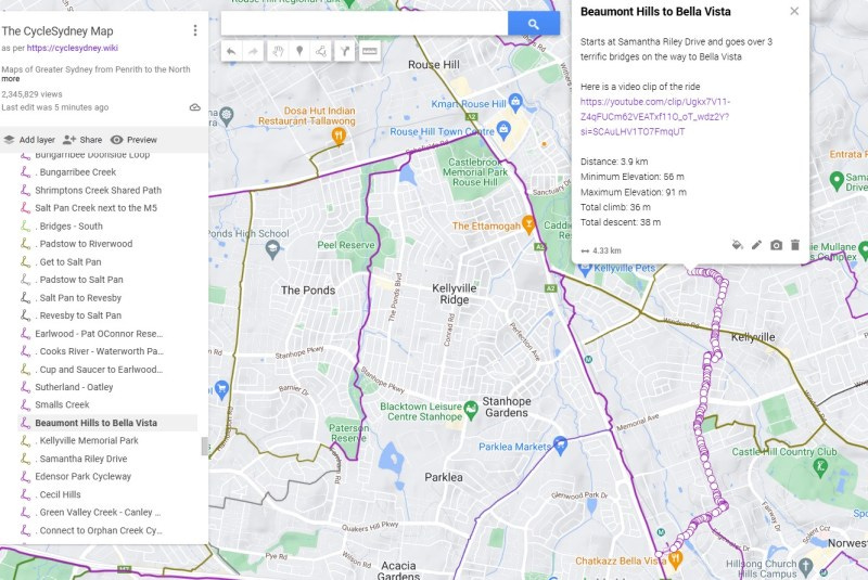 In the Northwest of Sydney there is the Old Windsor Rd cycleway and all the great rides around The Ponds and Bella Vista. This area is a feature of the Greater Sydney BikeTrail