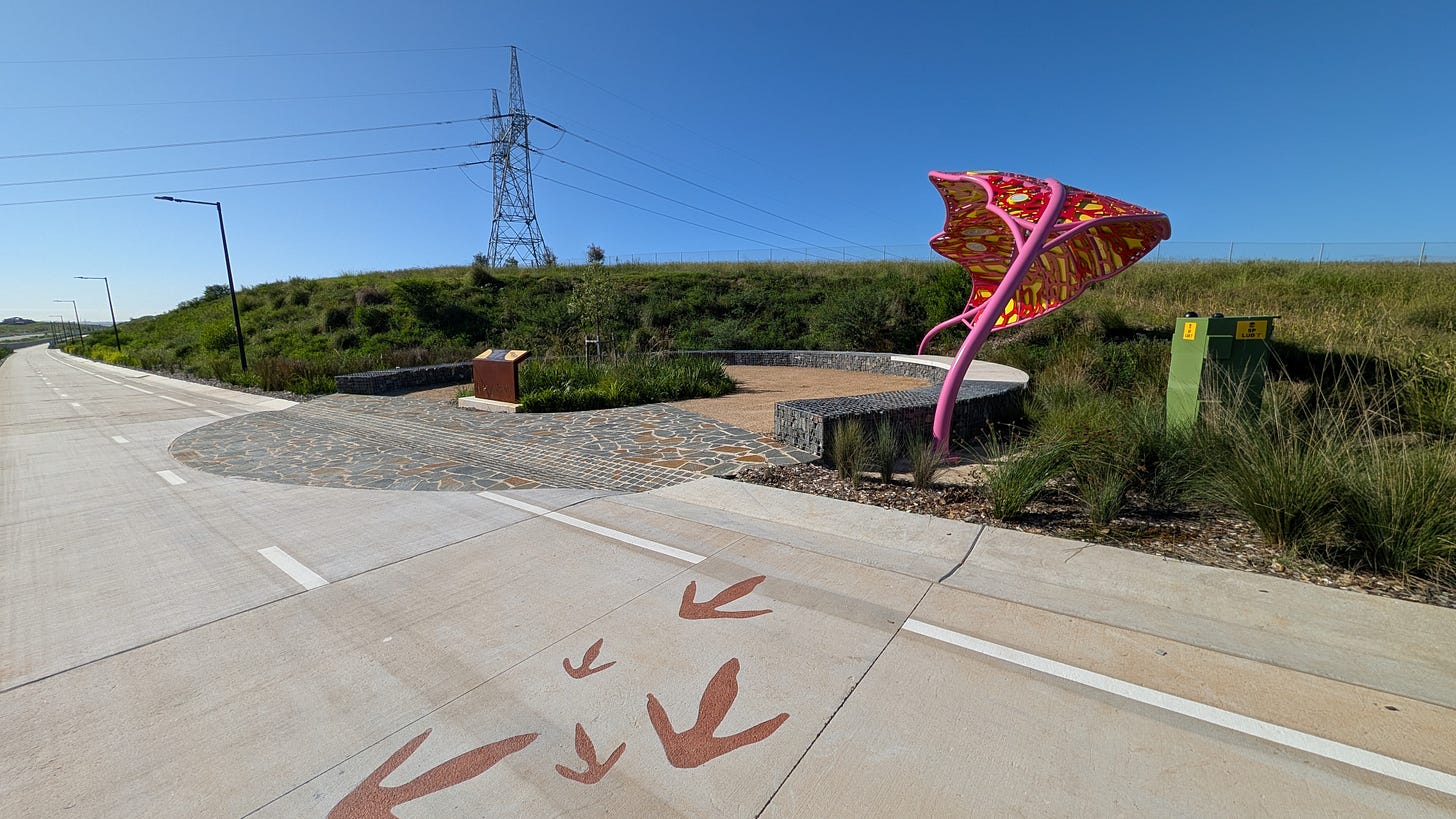The Emu Trail on the edge of the brand new M12 motorway opened on the 14th March 2026 and I heard ABC Radio say. “There are a lot more cyclists here today than cars” . And the bikes kept coming and they all looked pretty happy with the Emu. Lets look at the track and the crowds and then I will explain to Paid Subscribers some of the finer points of enjoying the trail at the end. The Emu is 16km long.