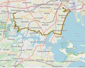 They say that Sydney is not so great for cycling and one of the areas where this rule of thumb applies is the area around Kogarah Bay and Hurstville. As I love the cycling around Oatley and along Botany Bay so much, I have gone over the maps many times and ventured into the area like an early explorer a few times. Finally, thanks to power of the eBike I think I have discovered a way through that would do for the hardy souls that want to venture across.