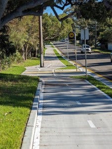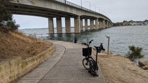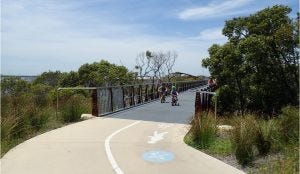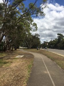 Cycling from Riverwood Station near the Salt Pan Creek trail to Sutherland Station across the Alford Point Bridge and the Woronora Bridge (20kms with hills one way). Menai is a particularly good area for shared path cycling. The following photos are samples of what you might see.