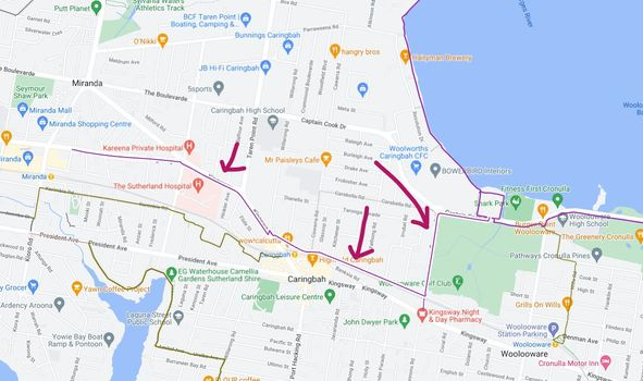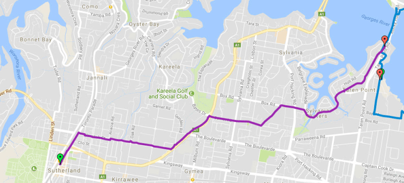Shark Park to Caringbah Station and then to Miranda