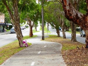 You will then continue on paths and back roads heading west from Buraneer St towards Camillia Gardens. There are cafes and shops at the end of Northcote and a good toilet block in Castelnau Street Reserve.