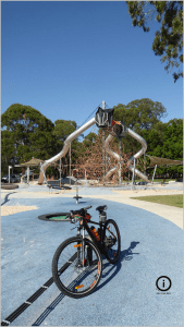 This 20 km one way trip near Liverpool in Sydney is a good clean rolling ride through the trees along smooth paths. The trail start in the nice suburb of East Hills and within a few 100 meters you are on separated trail for most of the next 16km. First I suggest a diversion towards the Bankstown University because the tarred path is so pleasing to roll on. Return to the edge of Henry Lawson drive. Make your way up and over the M5 carefully and turn left when the trail crosses the road into Millperra. Ride along between the Georges River and Henry Lawson until you cross under the very busy Newbridge Road. On the other side of the tunnel head 20m towards the road to see the wonderful optical illusion house. See trail on Western Parklands Map >> Now you can cycle all the way to Carramar. Take your time crossing the Hume Highway (its well organised) and if you are doing an up back, this is good place to turn around or just before where there are three good little hills. At Carramar ride your bike down the not busy Waterside Crescent to the station. To get to Fairfield Station, continue under the Carramar station and head north for Haughton St, Carramar. From there the trail starts again and soon you will be in a good teenagers play park called Fairfield Adventure Park. If you are arriving by car, I recommend Kelso Park, East Hills as a good place to start just off the M5. Older kids will enjoy this ride and people who like 20km hitouts like me, using the two train lines is a good adventure in itself. It certainly wasn’t busy on the three weekdays at 9 am that I have riden it. Find East Hills at the bottom of this map and the trail runs north from there >>