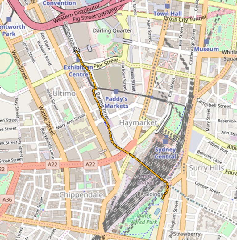 Start: Head to the south end of Central Station near the Devonshire St Tunnel.