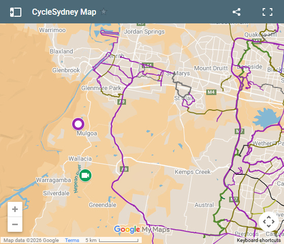 The northern road exists for all the things that are going to happen with the Badgerys Creek (Western Sydney Aerotropolis) and all the new towns that are to be built in that area. Given that those places haven’t got an public transport, getting to the track is tricky. Here are some ideas Drive to Glenmore Park – Park on Glengarry Rd. Do an up and back to Bringelly. Extend that with a loop around Penrith and Glenmore Park and make sure you go an extra few km and see the Yandhai Nepean bridge. Train to Leppington Station – Easy 8 km ride up the shared paths to the Northern Road. Maybe riding to Luddenham shops and Oran Park would be a good way to do it. Train to Macarthur Station and train back from Penrith – (or the otherway round) and ride up past Narellen. This is around 55km and Penrith is lower than Maccarthur / Campbelltown. The Big Loop – you are going to ride the M7 cycleway – Bringelly Rd – Northern Rd – find your way back to the M7. This is in the 80km range and the connection past St Marys requires you to go to the Great Western Highway. I have mapped out a shared path trail starting in St Clairs to the M7 that you could connect to from Victoria Park, St Mary’s. Good luck with that.